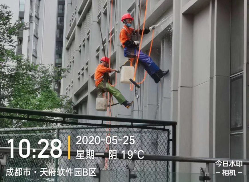 成都潔爾亮清潔對B區(qū)大樓外墻清洗服務(wù)。